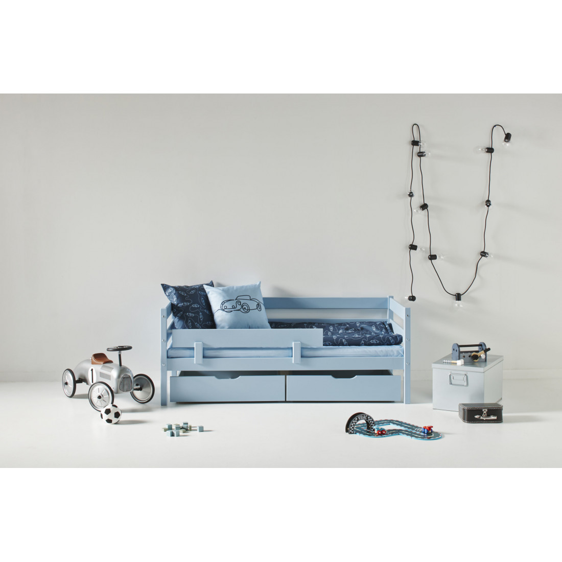 Ida-Marie dans Dream Blue est un lit junior mignon pour la chambre des enfants avec une surface allongée de 70x160 cm. Cette taille en fait le lit parfait pour les petits enfants jusqu'à l'école. En option accessoires, il existe un panneau de sécurité et des tiroirs supplémentaires. L'IDA-Marie Kids Lit est certifié selon l'étiquette environnementale nordique et testée pour une charge maximale de 100 kg. Dream Blue est une grande nuance de bleu têtue qui ajoute de la couleur et du plaisir à la chambre des enfants. Le bleu peut être associé à merveille avec d'autres couleurs.