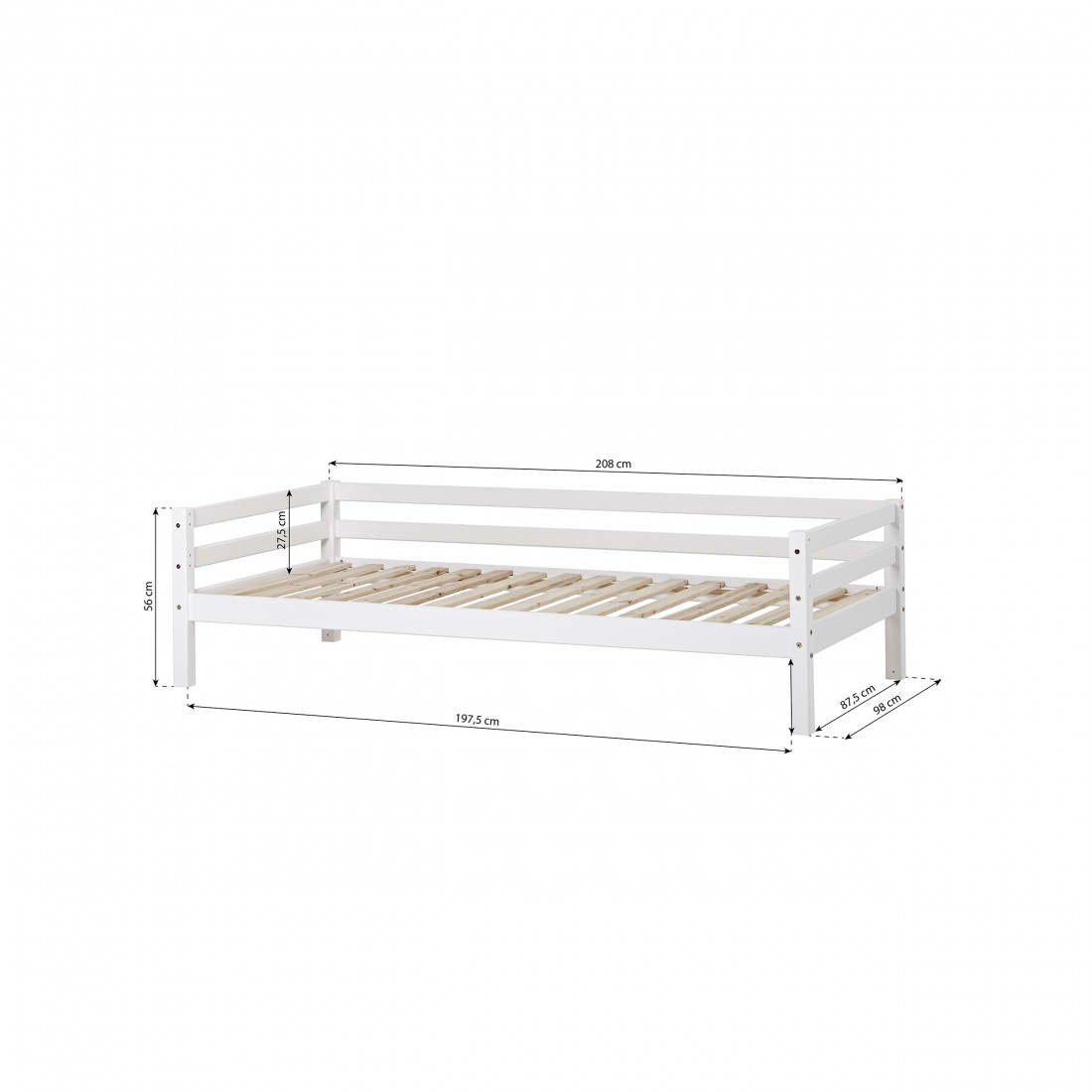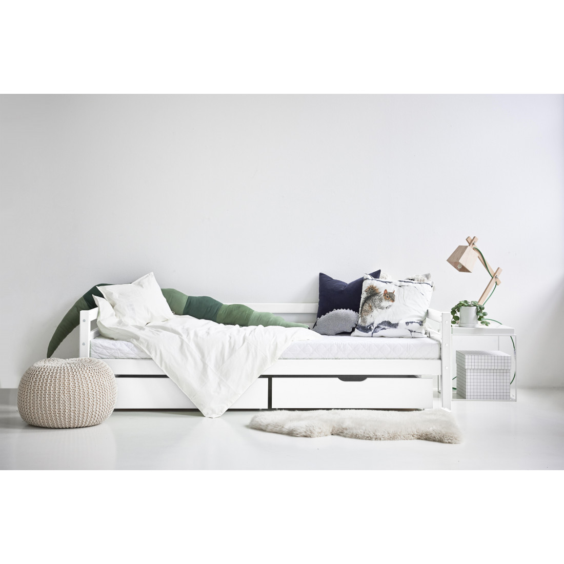 La grande taille 90x200 cm donne à votre enfant beaucoup de place pour grandir et vous pouvez facilement utiliser le lit jusqu'à ce qu'ils soient prêts pour la salle d'adolescente. La taille permet également à un adulte d'utiliser le lit ou de mentir à côté de l'enfant lors de la lecture des histoires de coucher. Taille 90x200 cm est également la taille qui vous donnera la plus de possibilités de reconstruire le lit à l'avenir - par exemple. dans un lit superposé, un grand dormeur ou un lit hauteur à moitié élevé ou mi-haut.
